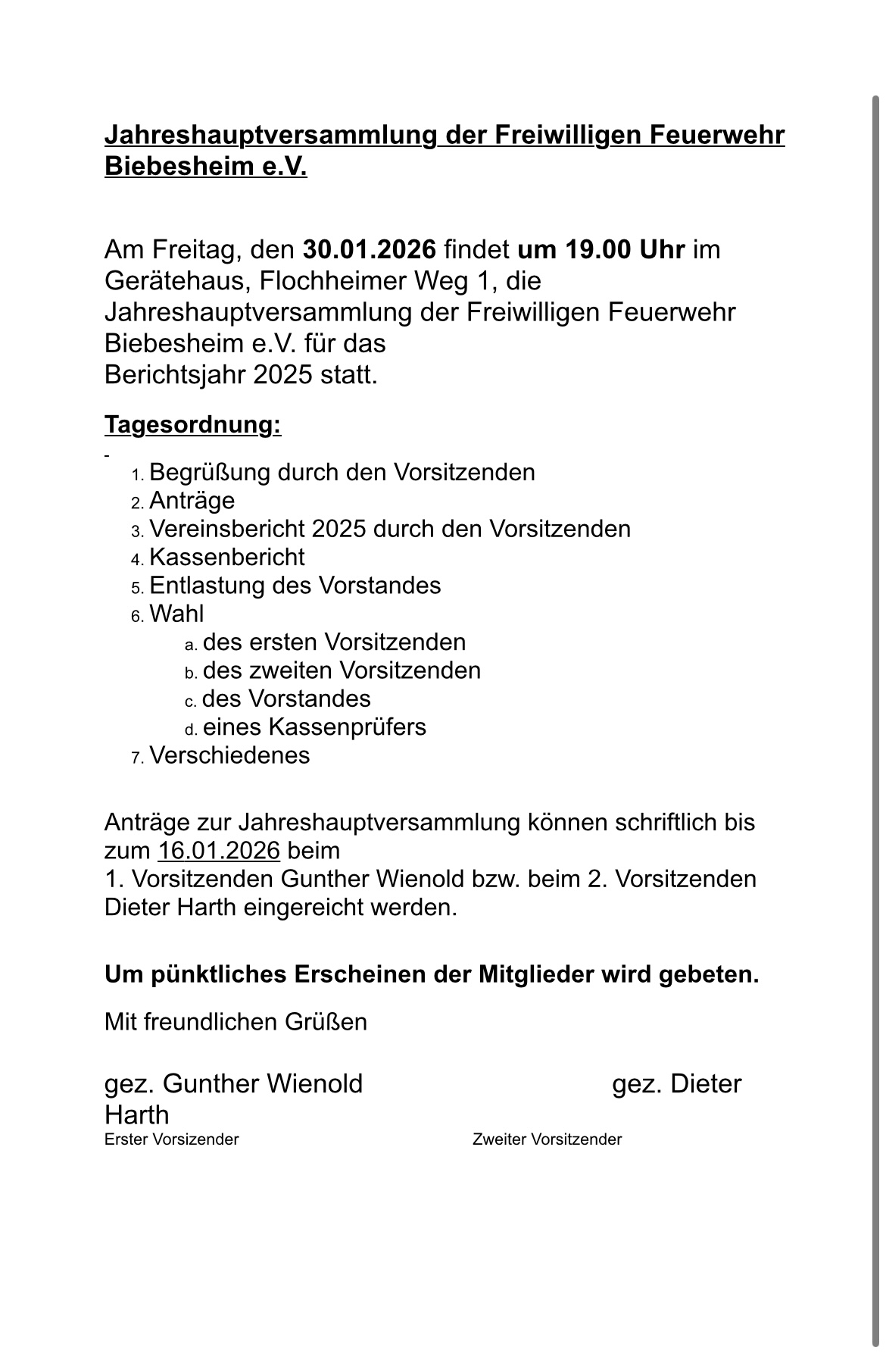 Einladung Jahreshauptversammlung Verfasst von Moritz Diehl am 22. Dezember 2025. Veröffentlicht in News