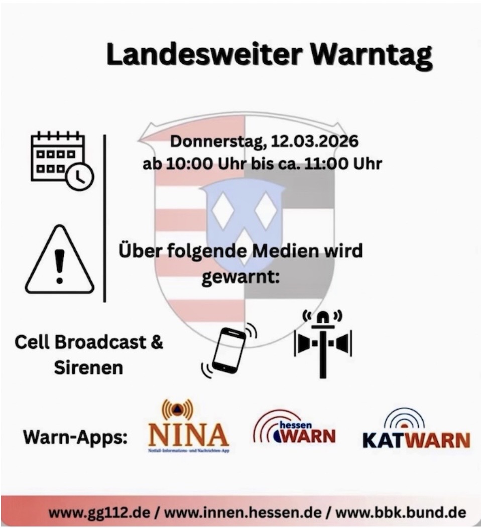 Landesweiter Warntag am 12.03.2026 Verfasst von Moritz Diehl am 12. März 2026. Veröffentlicht in News www.gg112.de Drucken E-Mail Weiter